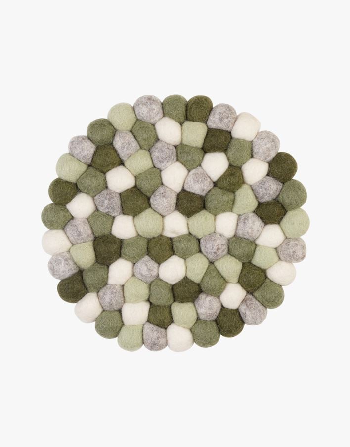 Gryteunderlag bestående av kuler i 100% ull.
